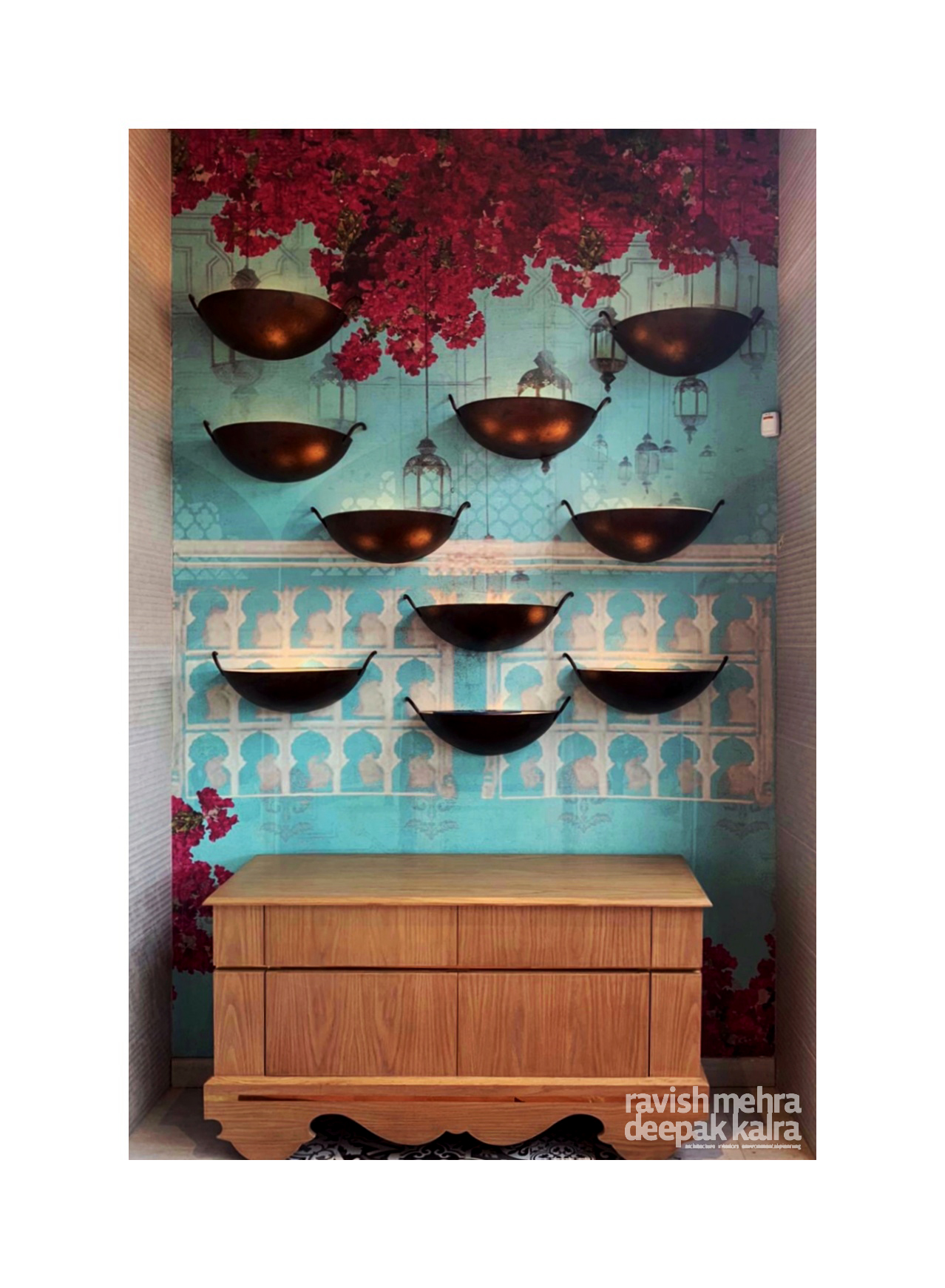 Vibrant, cozy, playful and luxurious, the interiors for Indian Hotspot is a balanced expression of youthful colors and patterns, along with the elegance of raw, organic materials like wood and copper. The warmth of neutral hues, indoor planters and warm grey walls, is enhanced by our innovative take on the traditional Indian handicrafts with rattan work furniture, brass inlays, wooden ceiling, prints and motifs, and sleek lanterns and chandeliers. This restaurant is thus, a simple and contemporary design that is rooted in its Indian heritage with a mass global appeal.